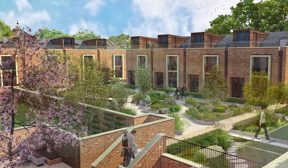 An extension to the Grade II listed upper courtyard buildings will create 14 townhouses with high quality materials echoing the rich character of the historic buildings.